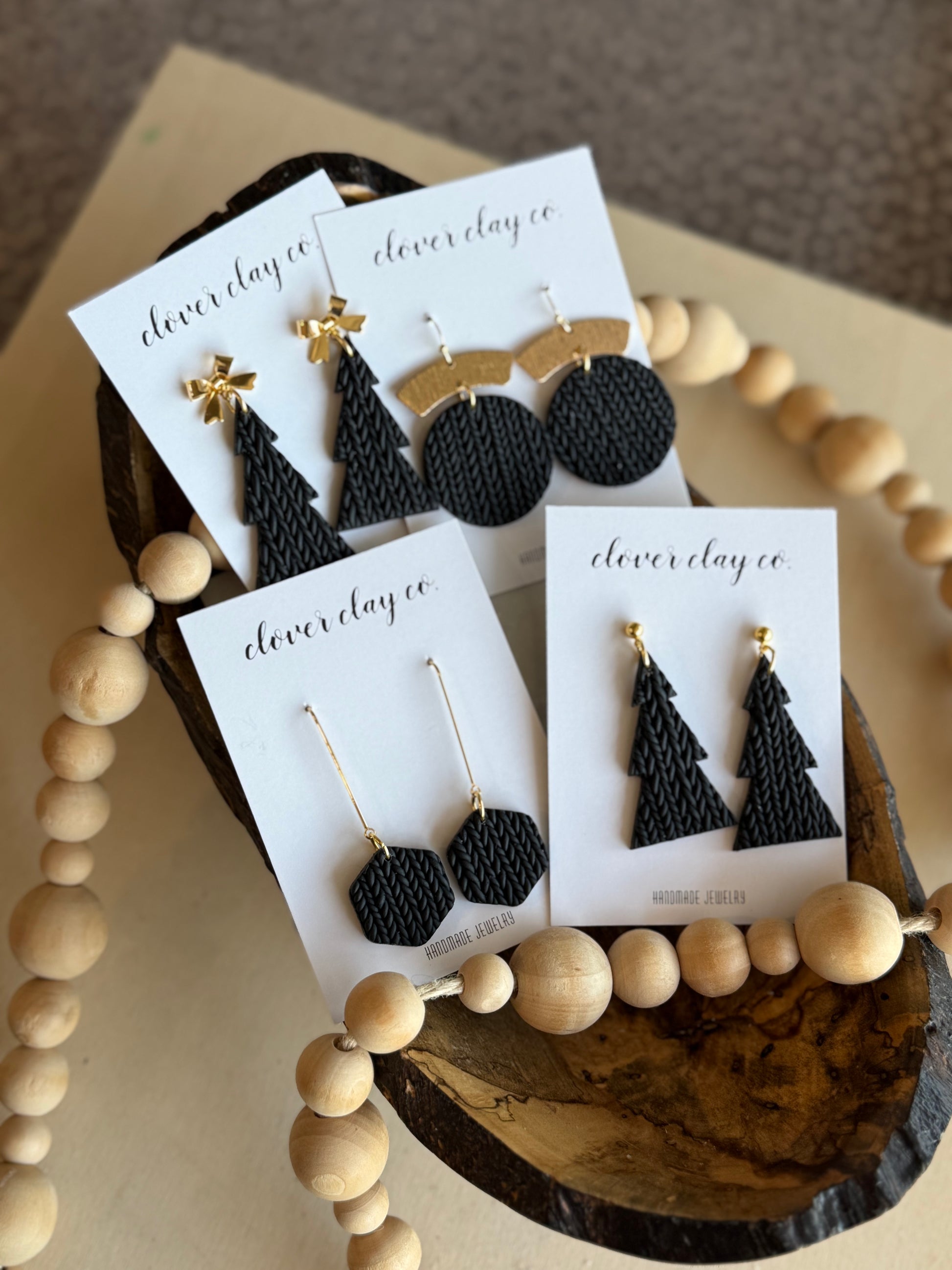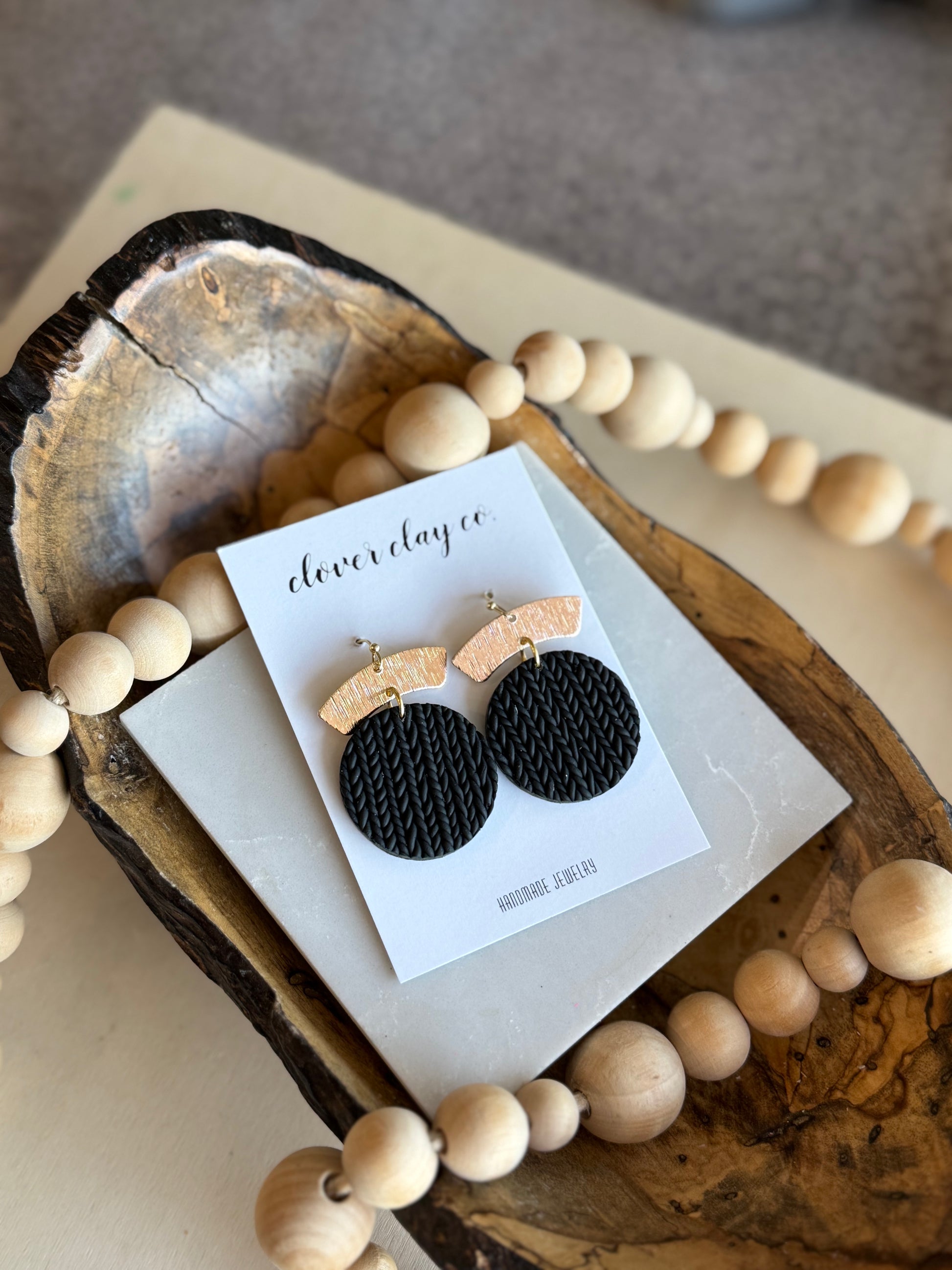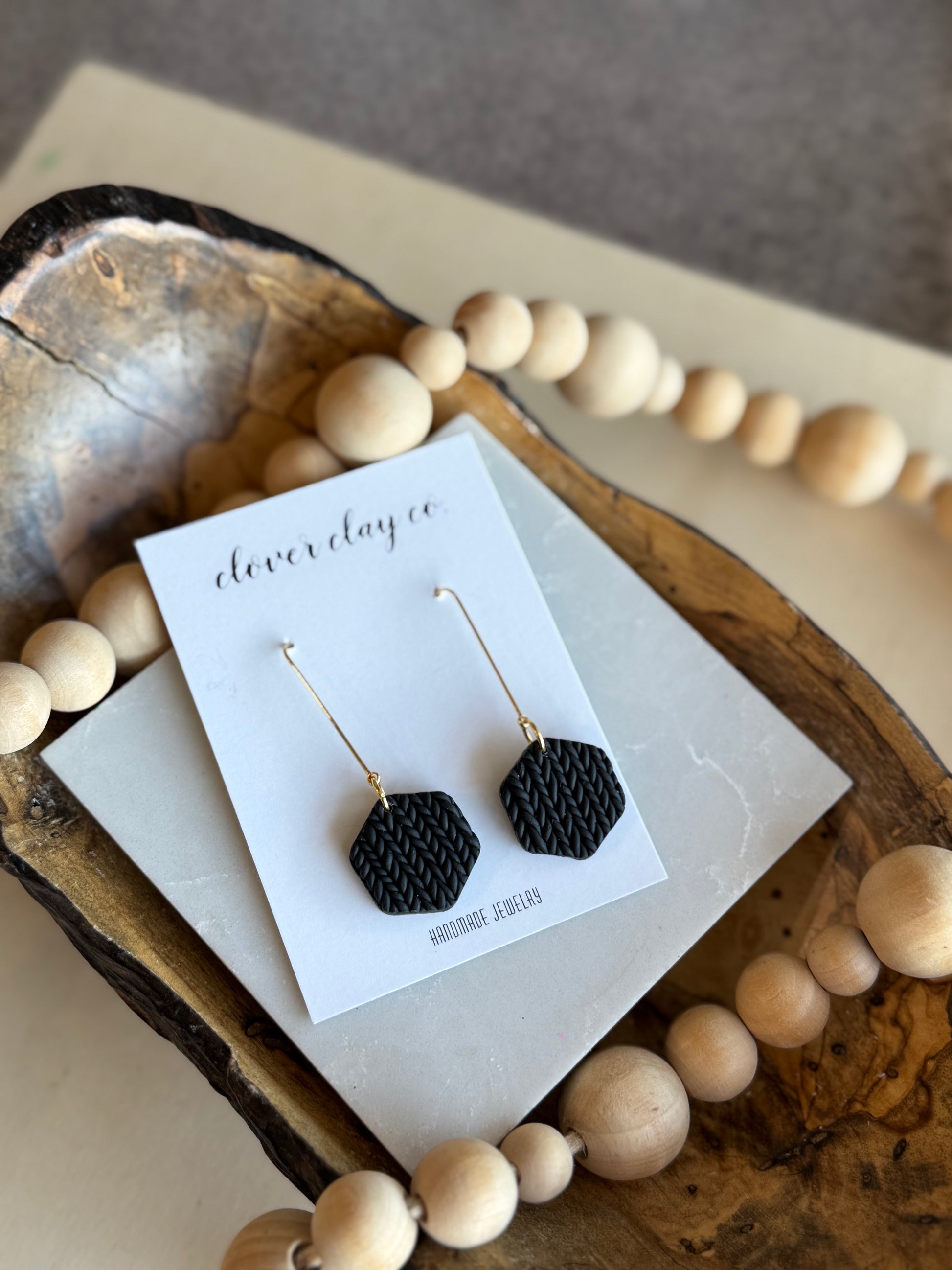 Hand laid clay pieces to form a cable knit pattern! Classic look! Gold plated posts.