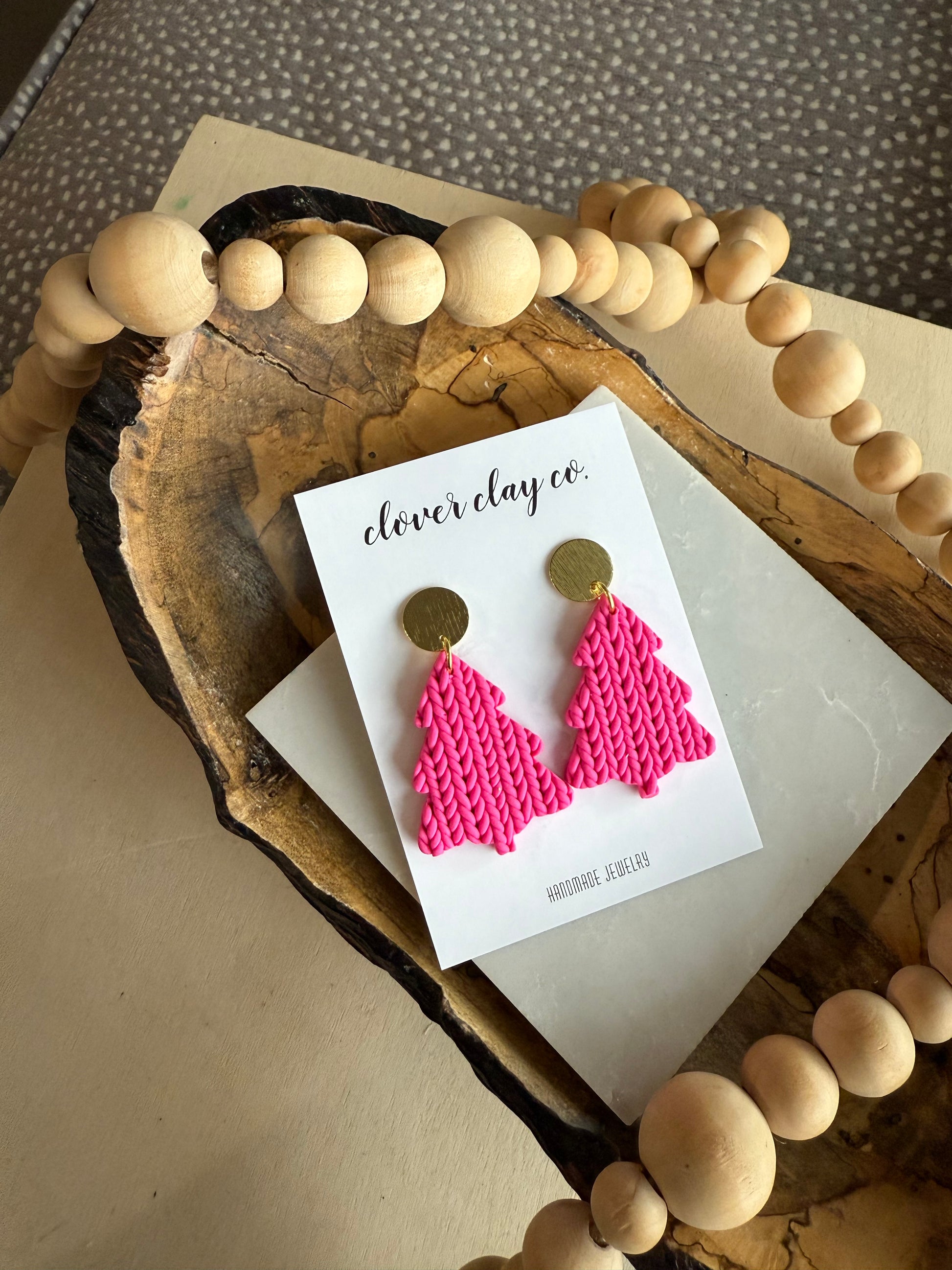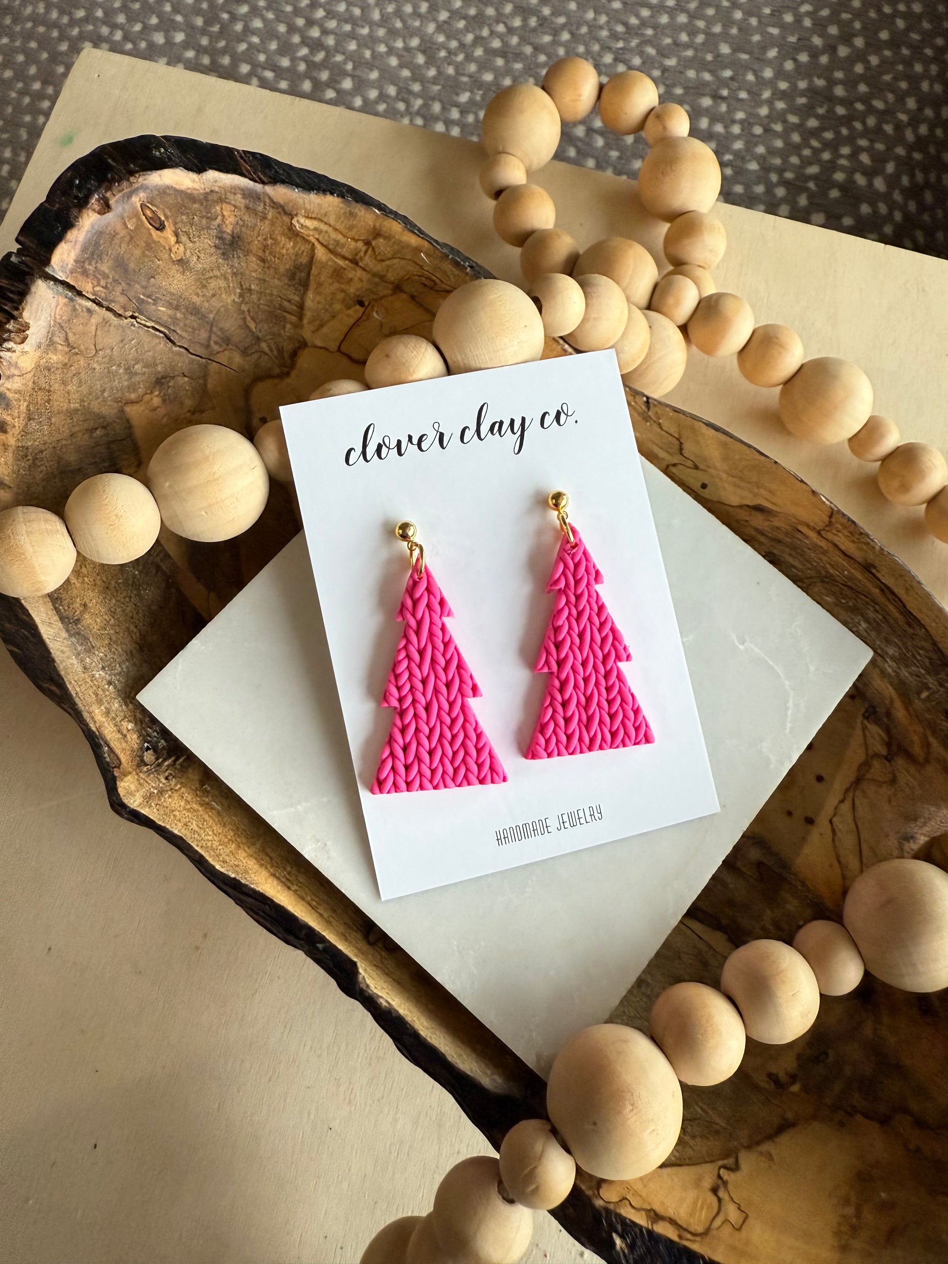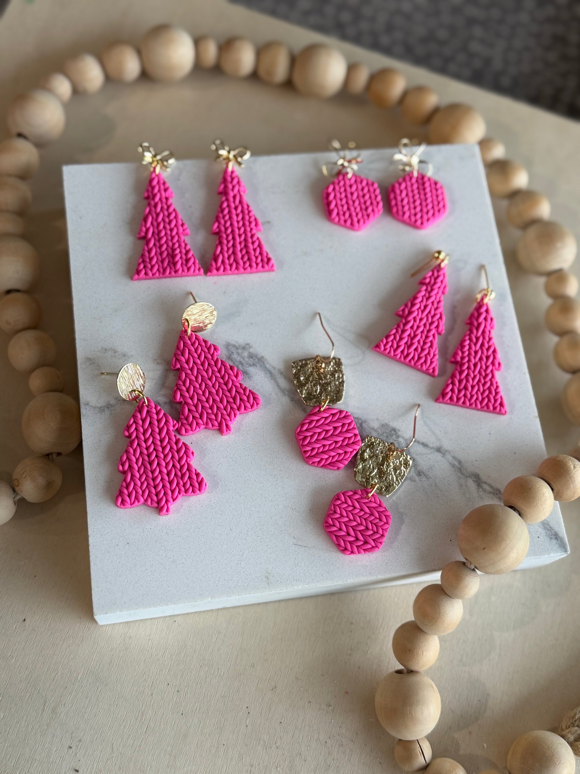 Hand laid clay into a cable knit pattern. Gold plated studs.