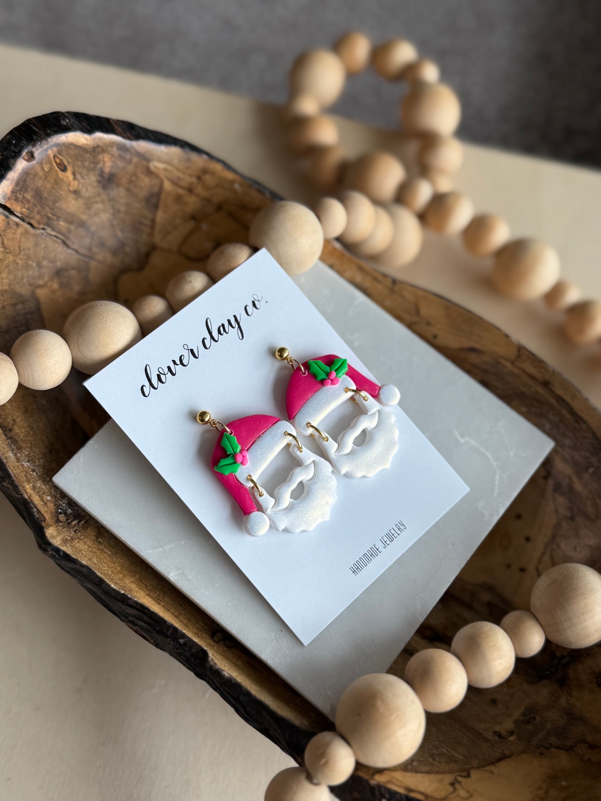 Hot pink Santa with iridescent beard! Gold plated posts.