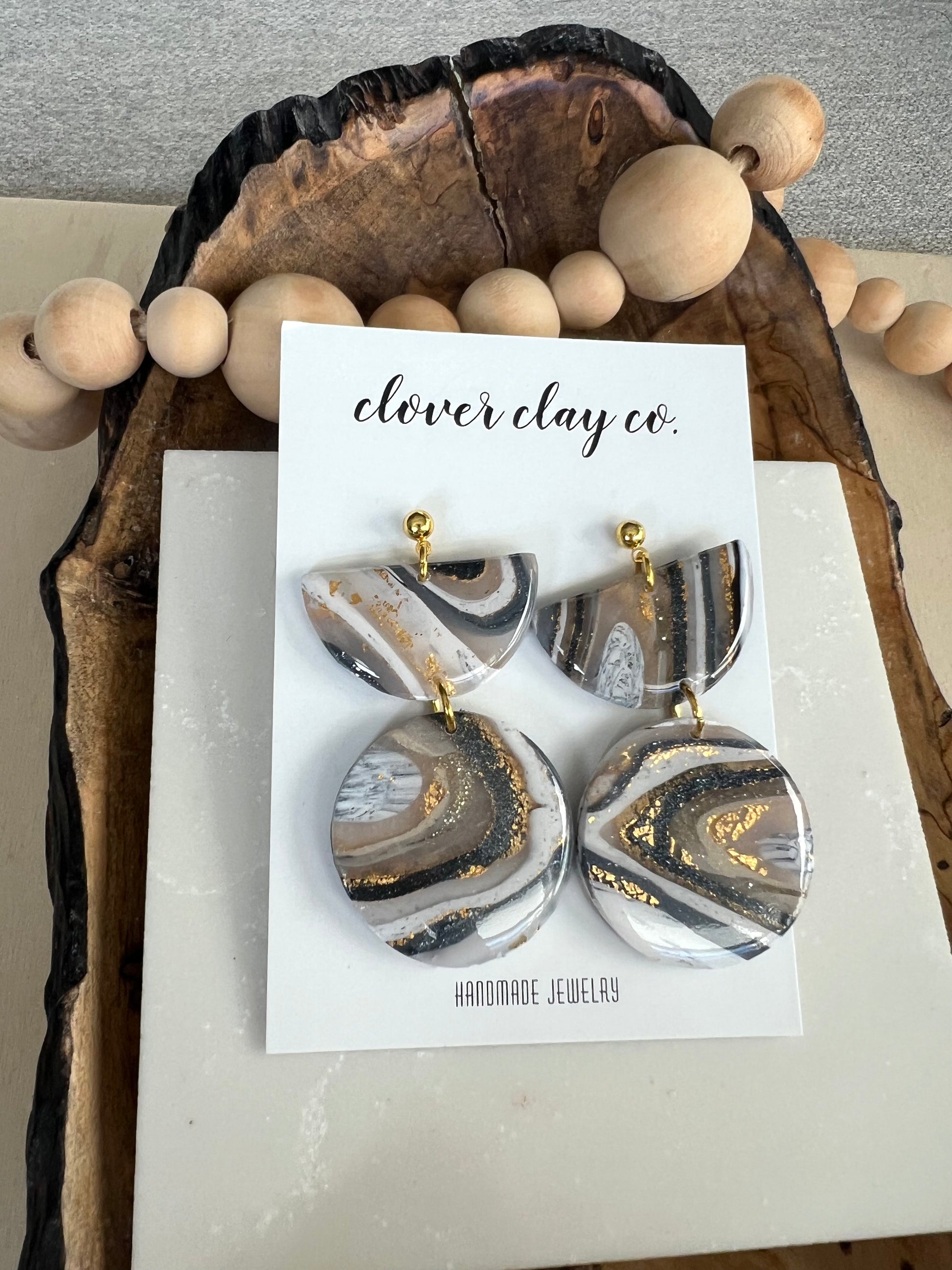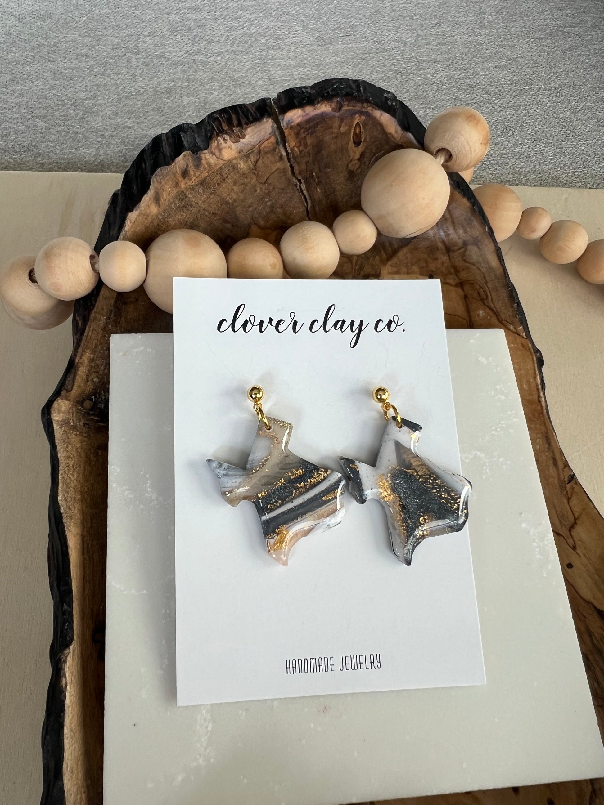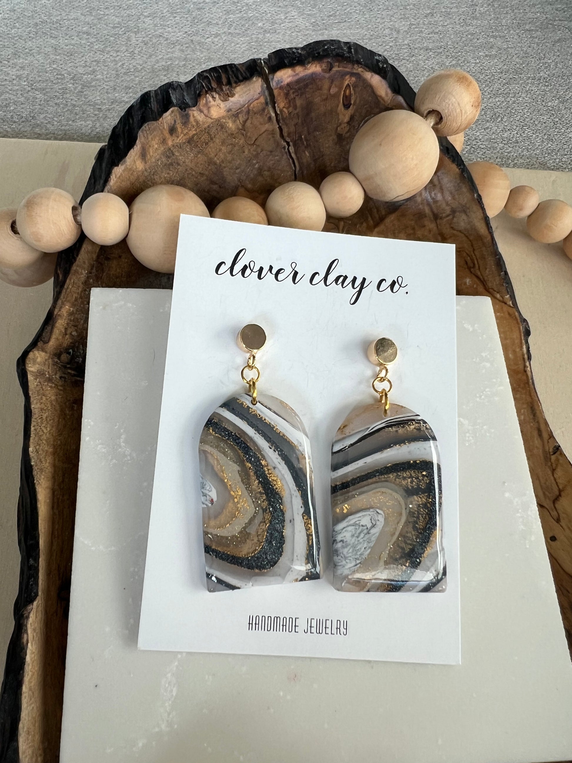 Hand made faux stone. Resin finish. Gold plated posts.
