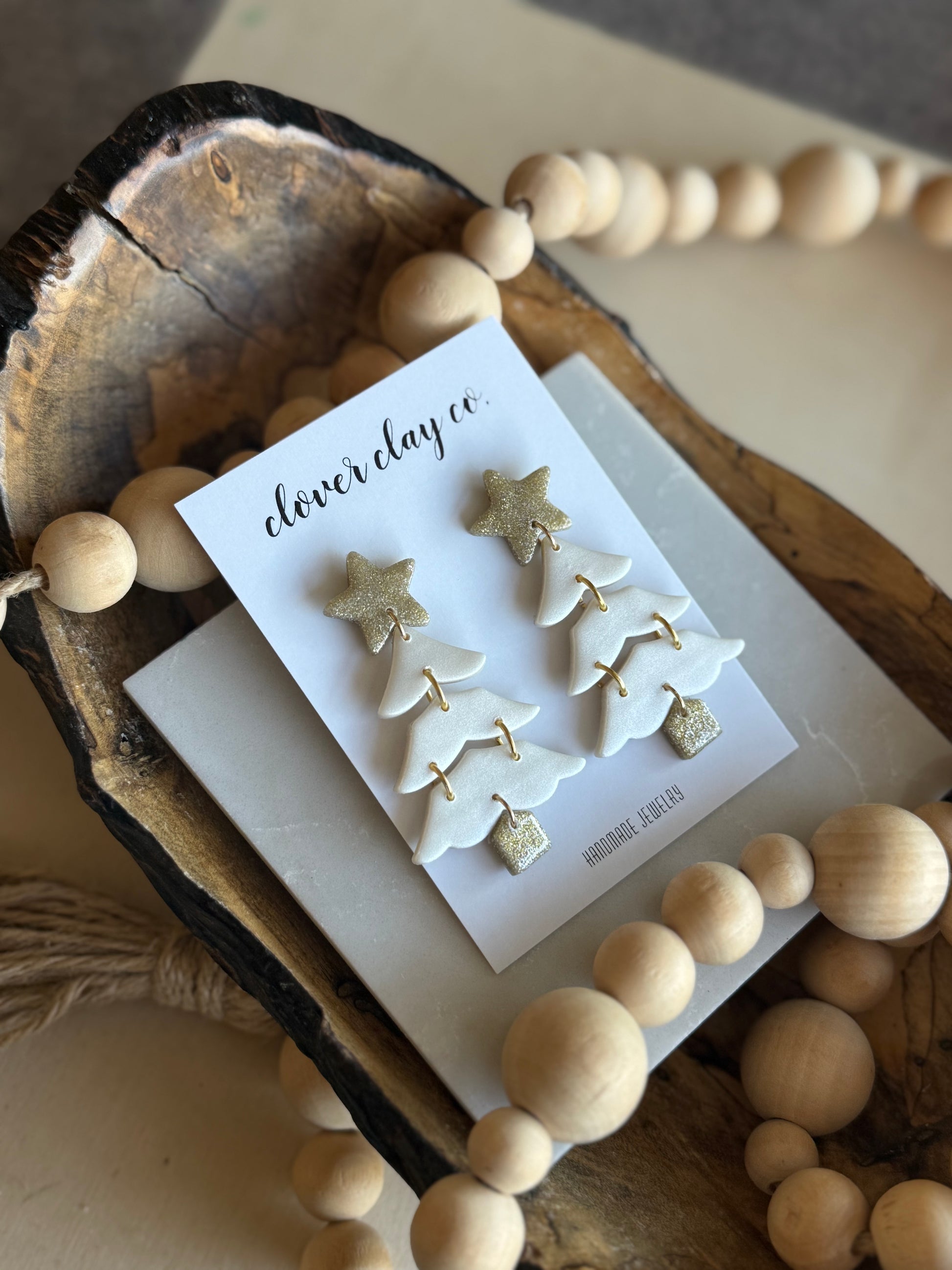 Tiered trees and glitter accents for the cutest holiday season accessory. Gold plated stud posts.