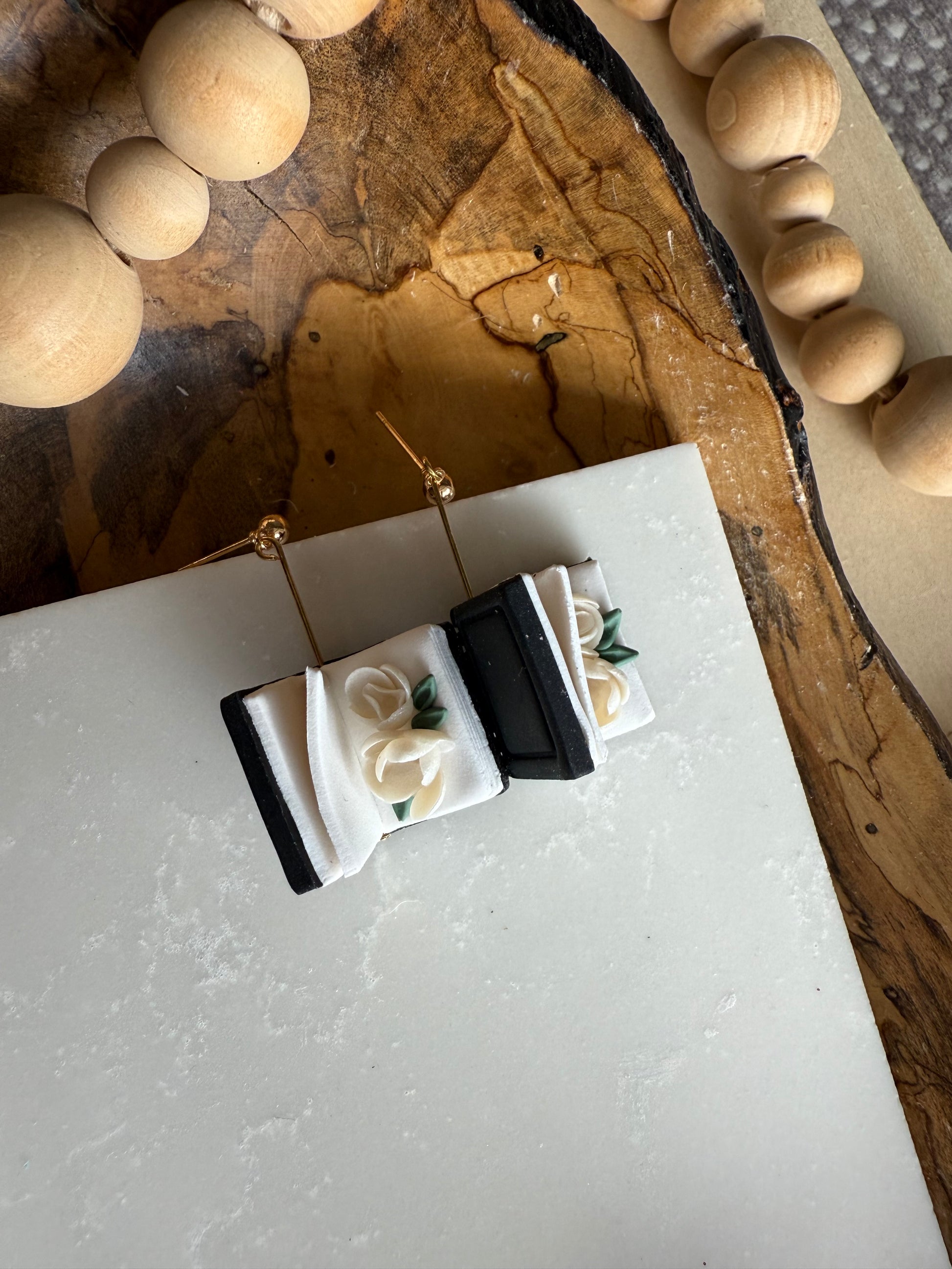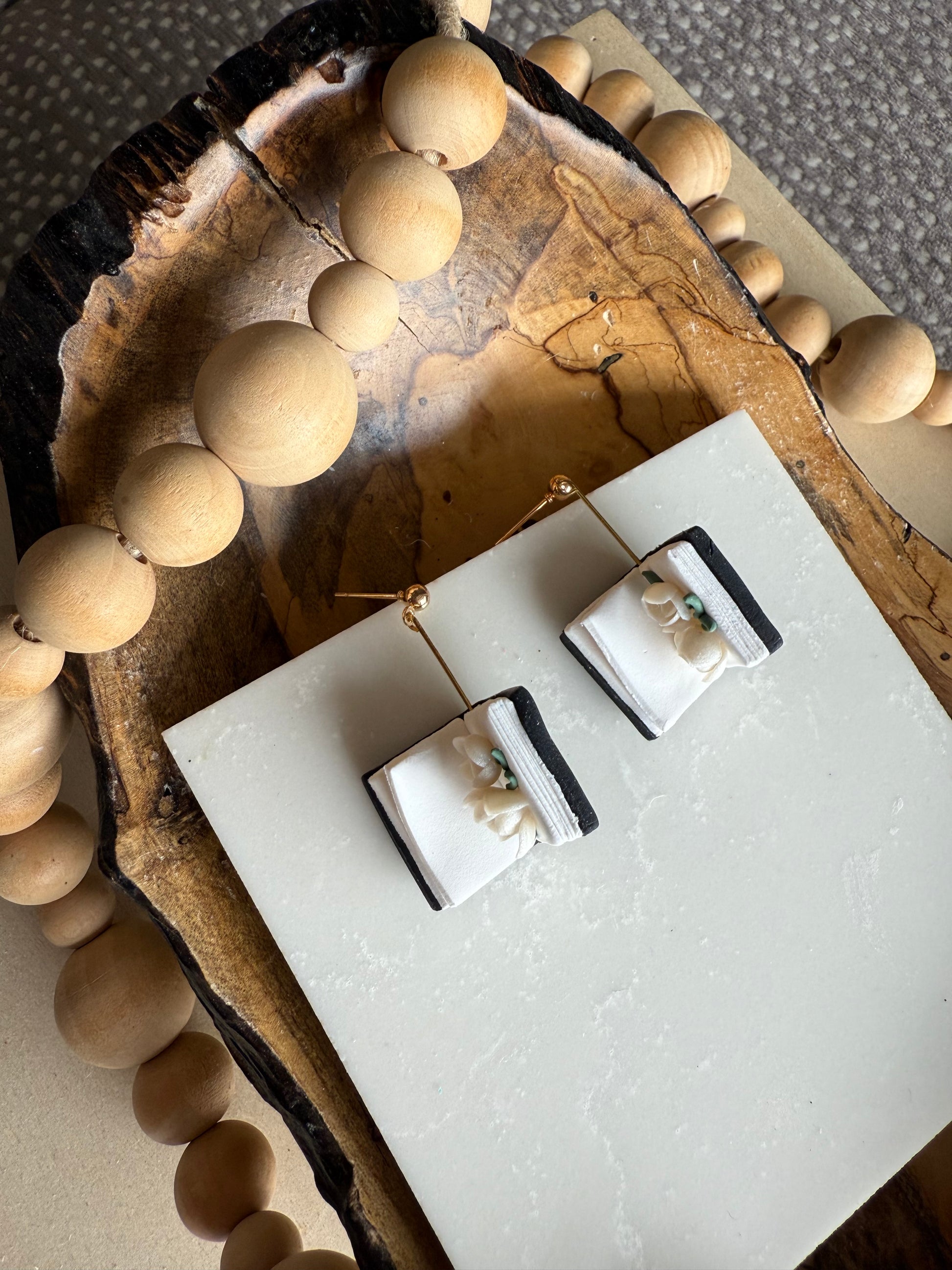 Open Book with floral details. Gold plated stud posts.